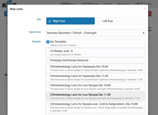 RGP Designer provides pre-built templates of lenses for any application which you will be able to adapt to reach the optimal correction.